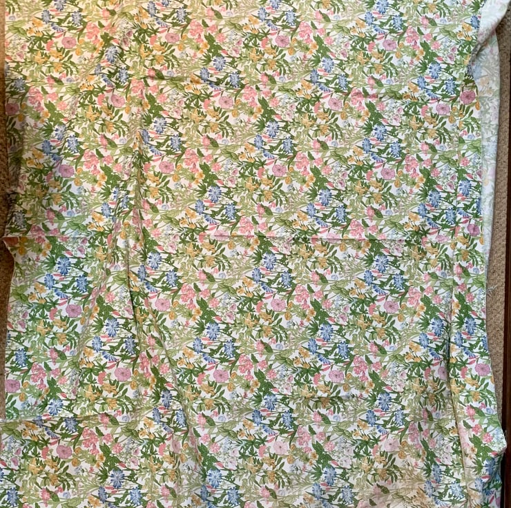 I usually launder my fabrics but they made need a freshen up after being in storage. Some flaws may be present due to age and use - major flaws will be detailed, fabric may come with hem intact or marks where I have unpicked them