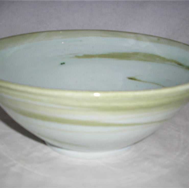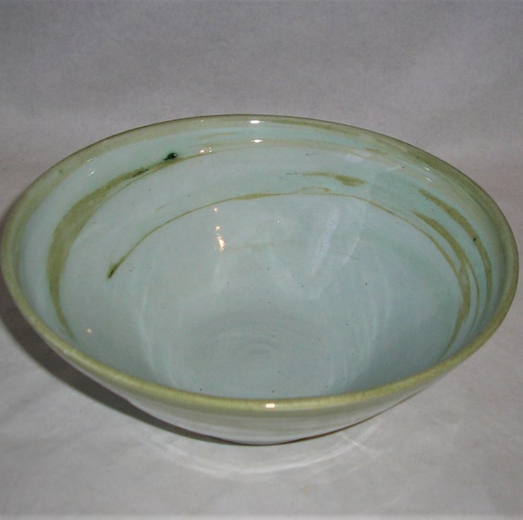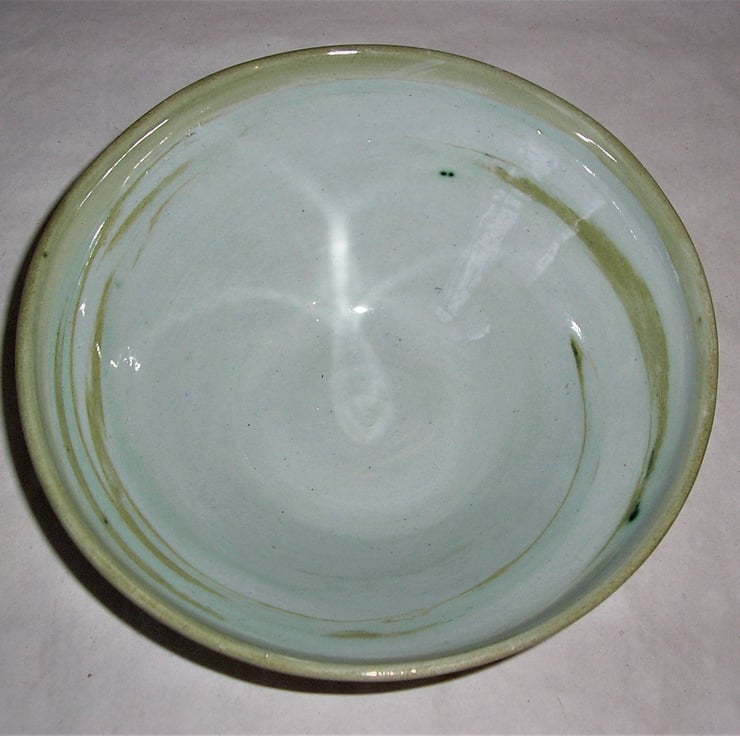 INSPIRED BY CHINESE AGATE WARE CERAMICS, I HAVE BEEN EXPERIMENTING WITH CLAY ON THE WHEEL. I MADE SOME BLUE AND GREEN CLAY AND ADDED SOME OF EACH TO WHITE EARTHENWARE CLAY. THE THROWN BOWLS ARE ALL A UNIQUE PATTERN WHICH IS ONLY REVEALED WHEN I PARE BACK THE SURFACE ON THE INSIDE AND OUTSIDE OF THE BOWL. I HOPE TO WORK WITH DIFFERENT COLOURS AND QUANTITIES OF CLAY IN THE FUTURE