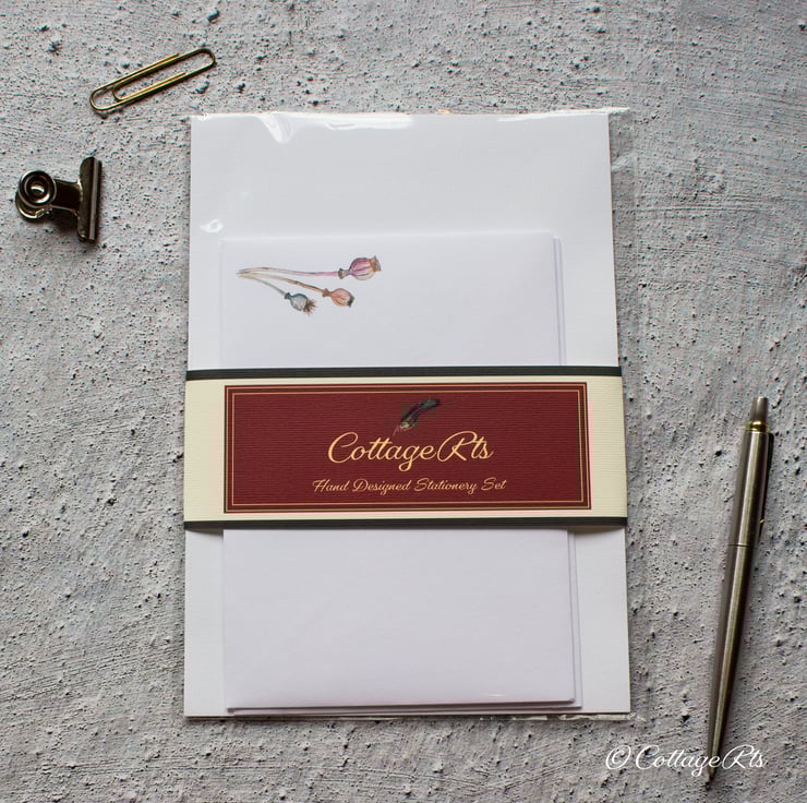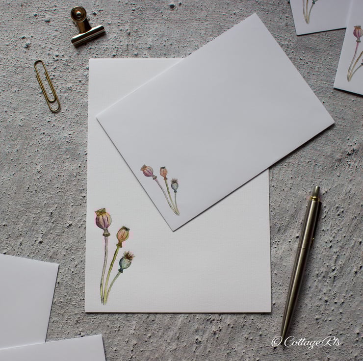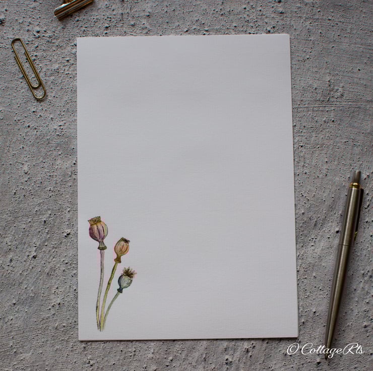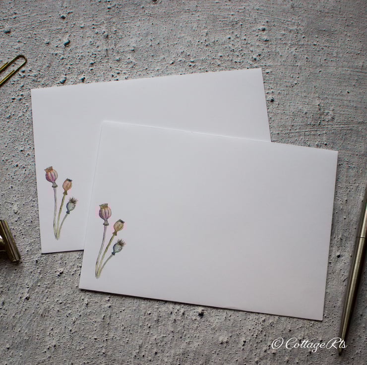 - 10 sheets of A5 100gsm letter writing paper with the poppy seed head design.