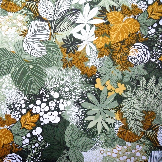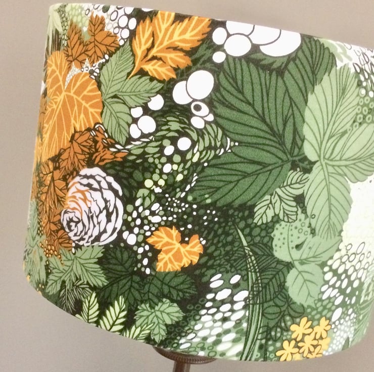 Green and Mustard yellow Leafy Foliage Lyndhurst by Grafton Vintage Fabric Lampshade option - an ususual fabric for a lampshade in a modern, vintage or retro home. A lovely natural leafy design .