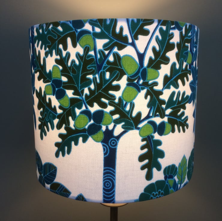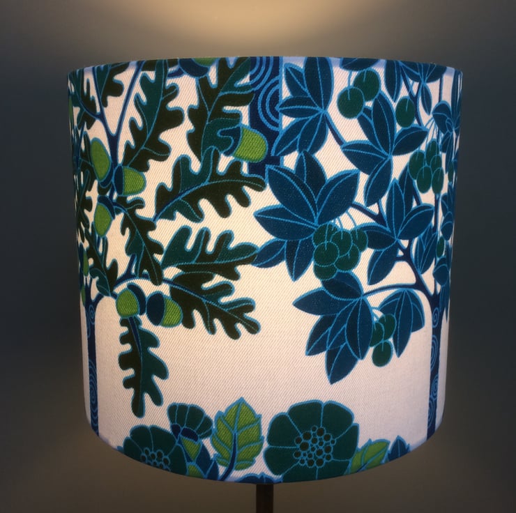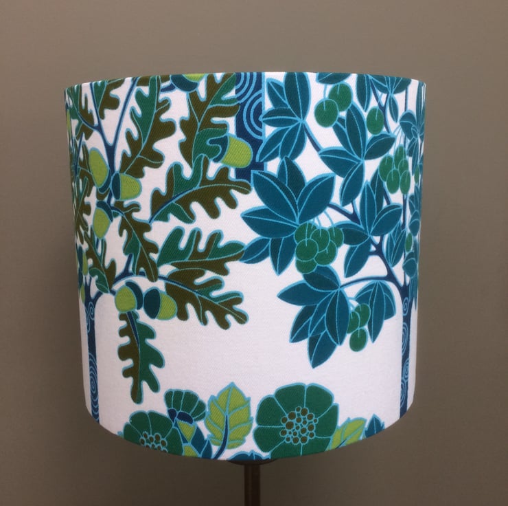 RARE Green Tree , Orchard by Osman 60s Vintage Fabric Lampshade option - an ususual fabric for a lampshade in a modern or retro home.