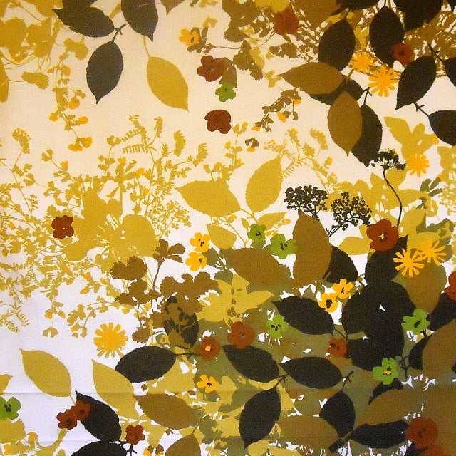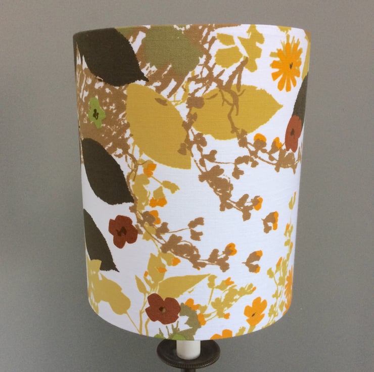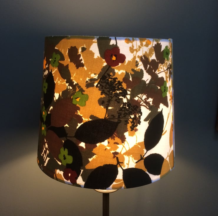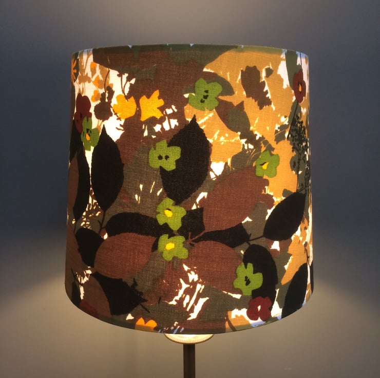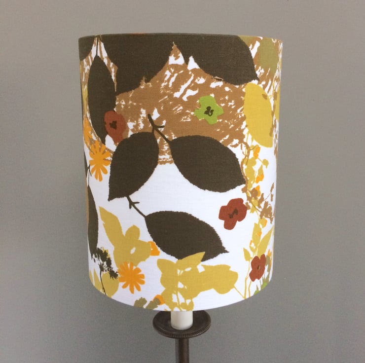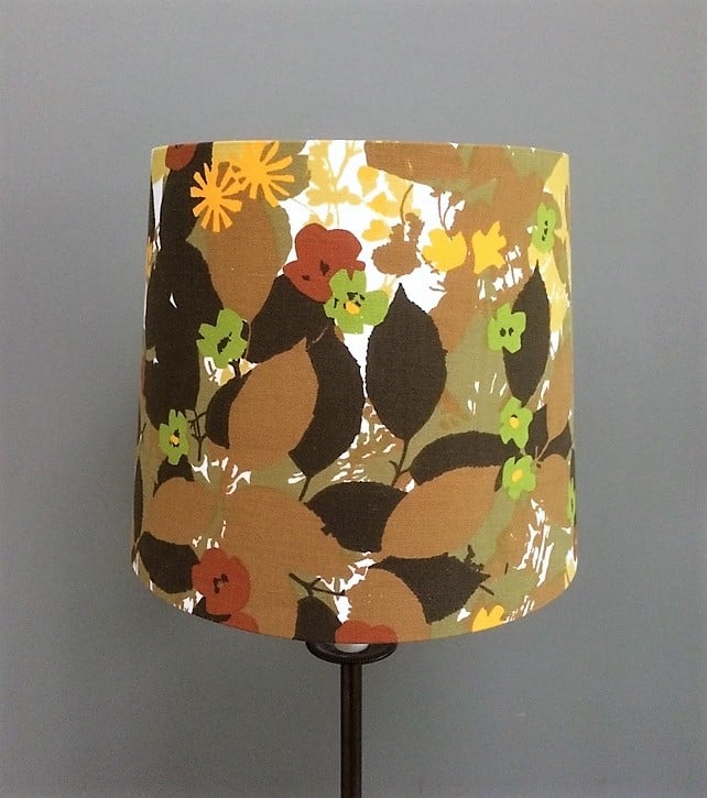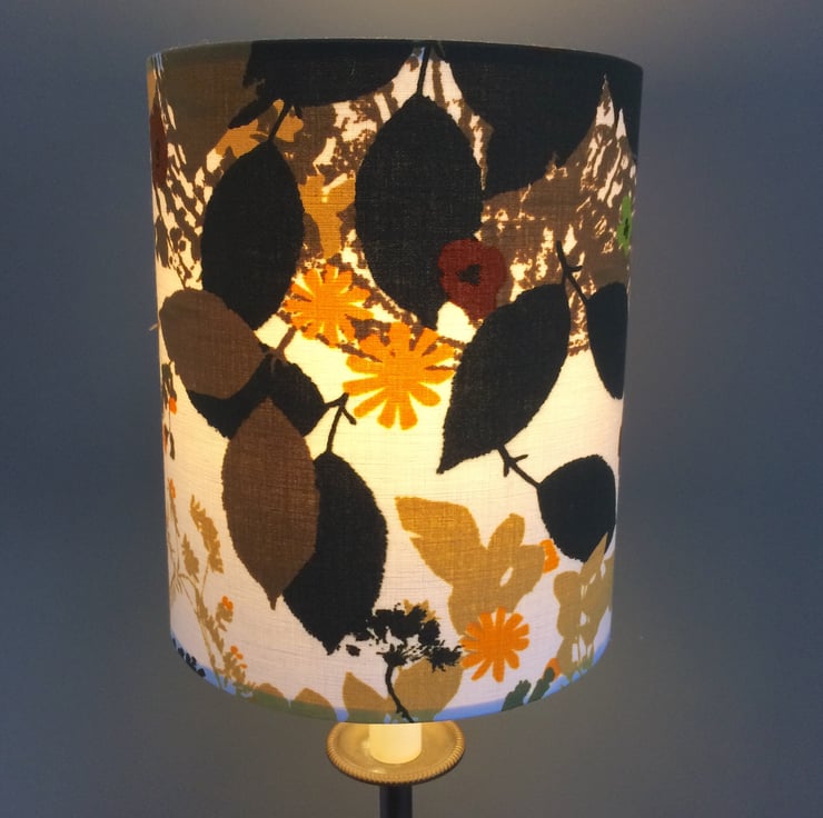 RETRO brown yellow Leaf Priscilla Bernard Wardle 60s Vintage Fabric Lampshade - striking fabric for a lampshade in a modern, vintage or retro home. Love this design - really great with light through it .