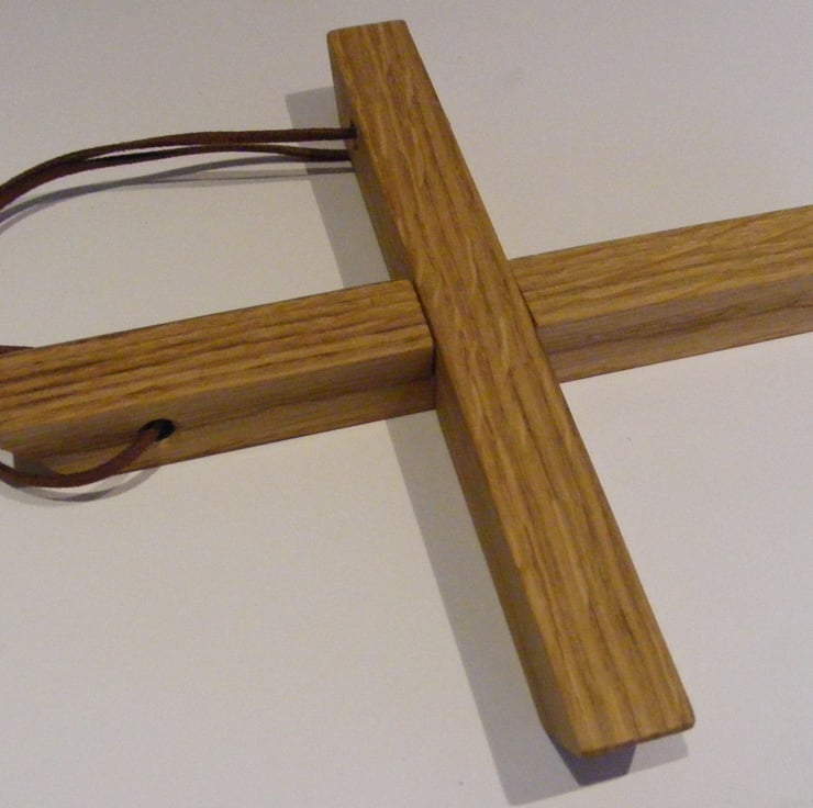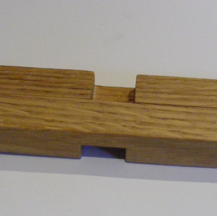 Reclaimed Oak folding trivet, Danish oil finish. 180mm x 180mm x 18mm. A folding trivet made from reclaimed oak, in two pieces which join into a cross and can be taken apart for ease of storage in a drawer or hung up. The two parts are joined by a micro fibre leather alternative which is food safe, colour fast, washable and heat resistant. The oak has cleaned up to have a lovely appearance and finish. A very useful kitchen item.