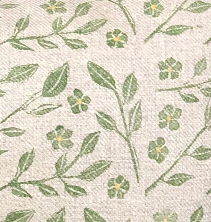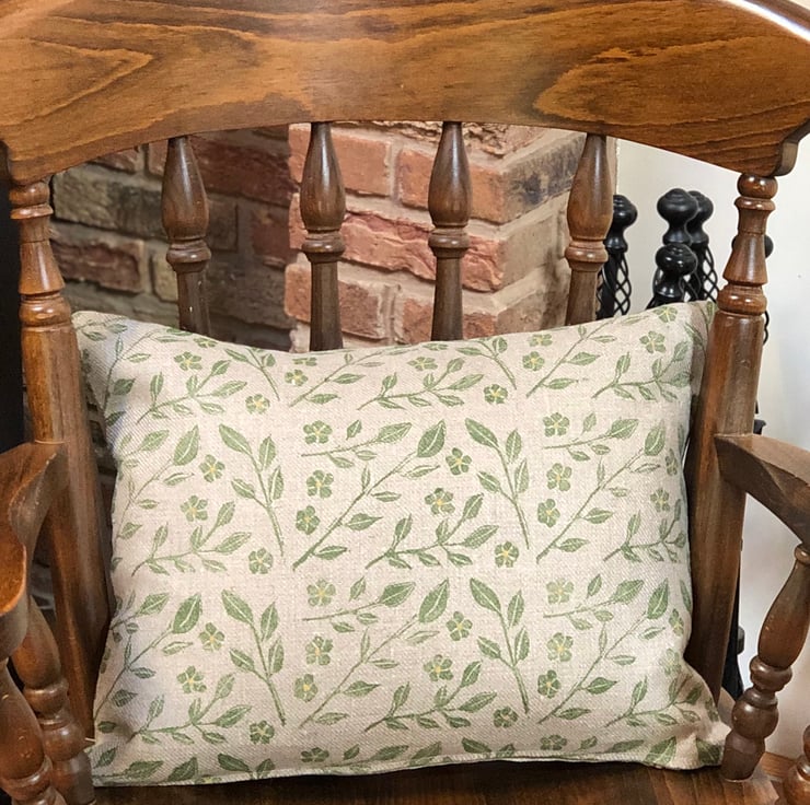 An attractive cushion constructed from a beautiful linen fabric that I have hand printed using a Lino block carved by myself depicting trailing Jasmine.The reverse of the cushion is a plain linen.It has a zip closure and comes complete with a feather filled insert. All seams have been overlocked.