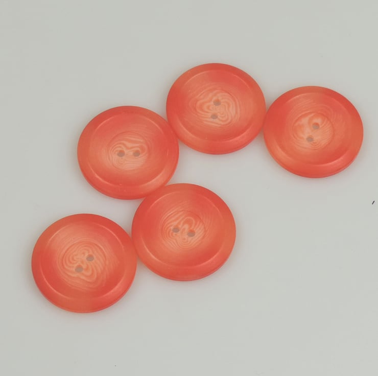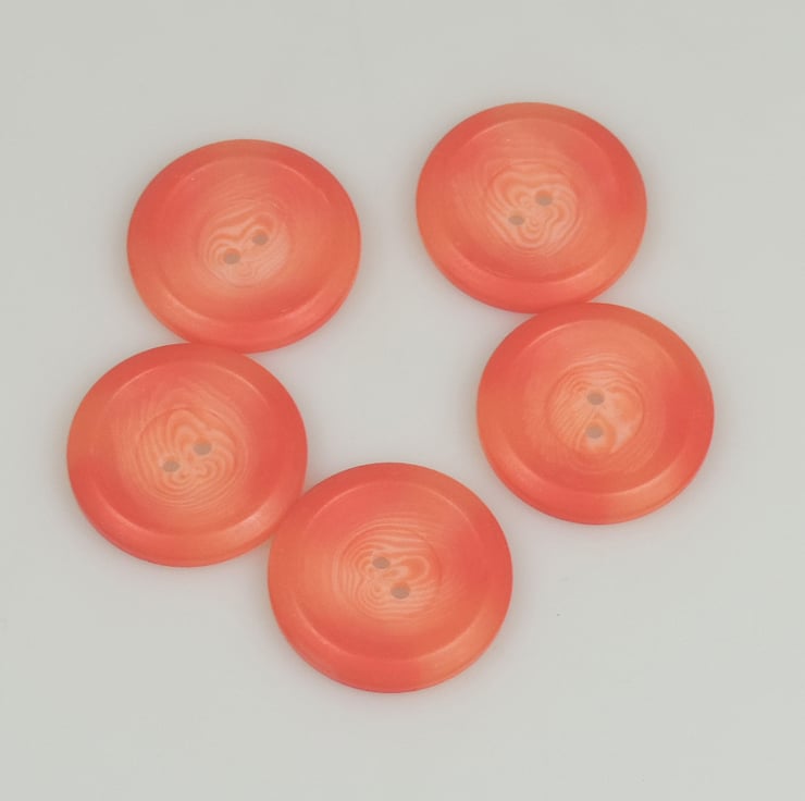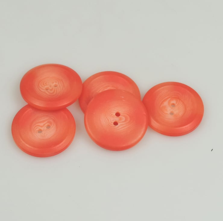 Orange, acrylic buttons,two central holes. Large 3cm buttons, warm orange colour slight variegation to the centre.