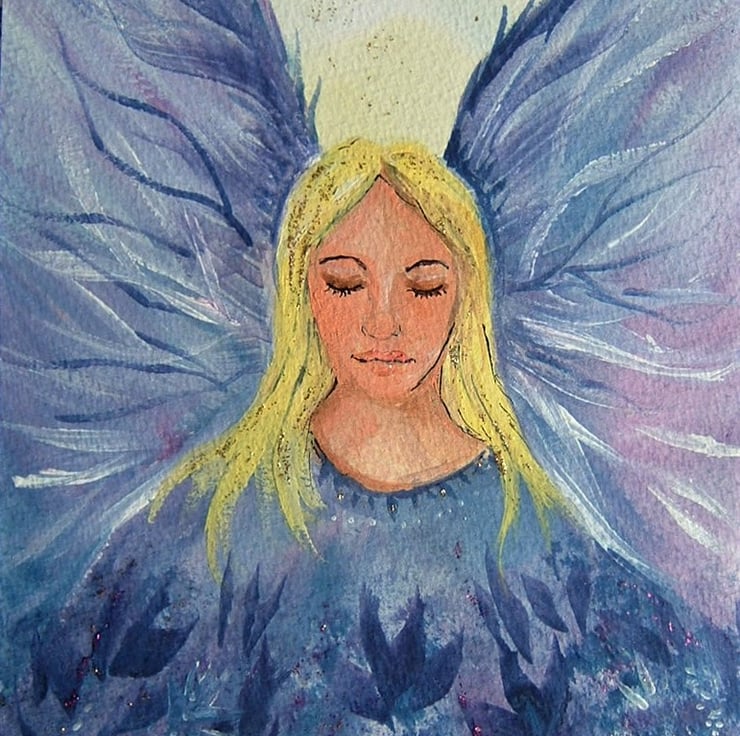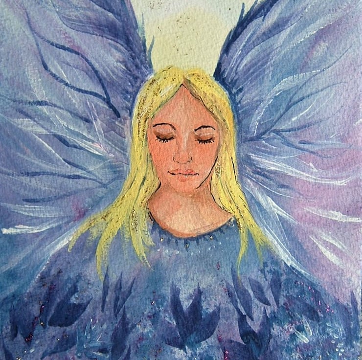 Bringing Spiritual Blessings and love , it has been created using a mixture of Watercolours, Acrylics and glitter.