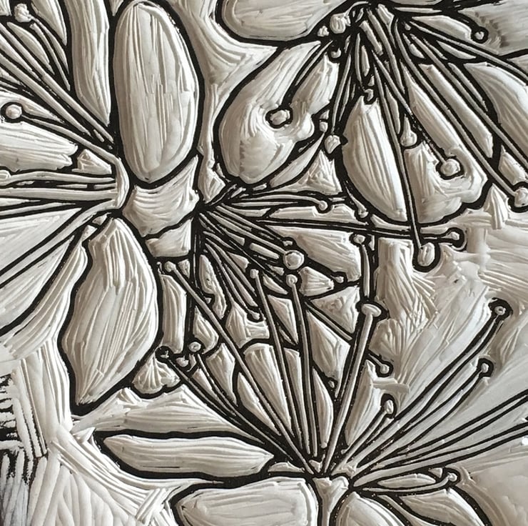 I'll draw, cut & print Blackthorn Blossom with its thorn eventually.....