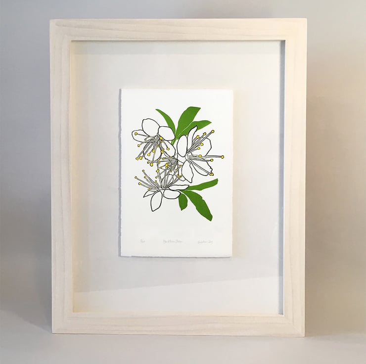I adore ‘line’ describing shape when drawing. So in this print, the ‘black’ exists in the lines which describe the blossom.