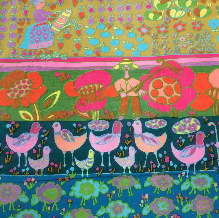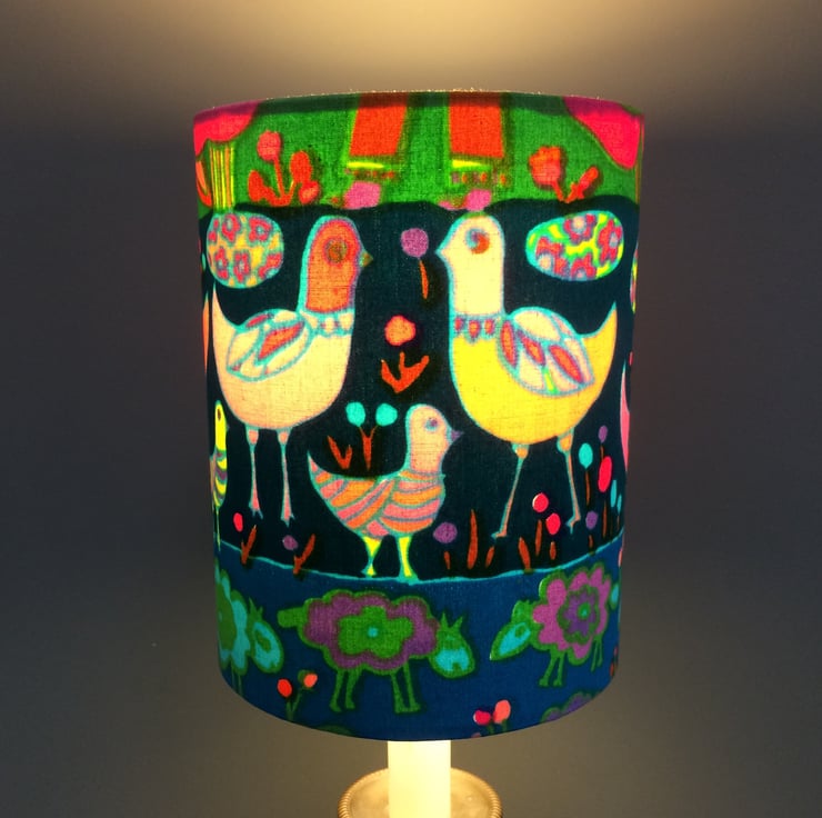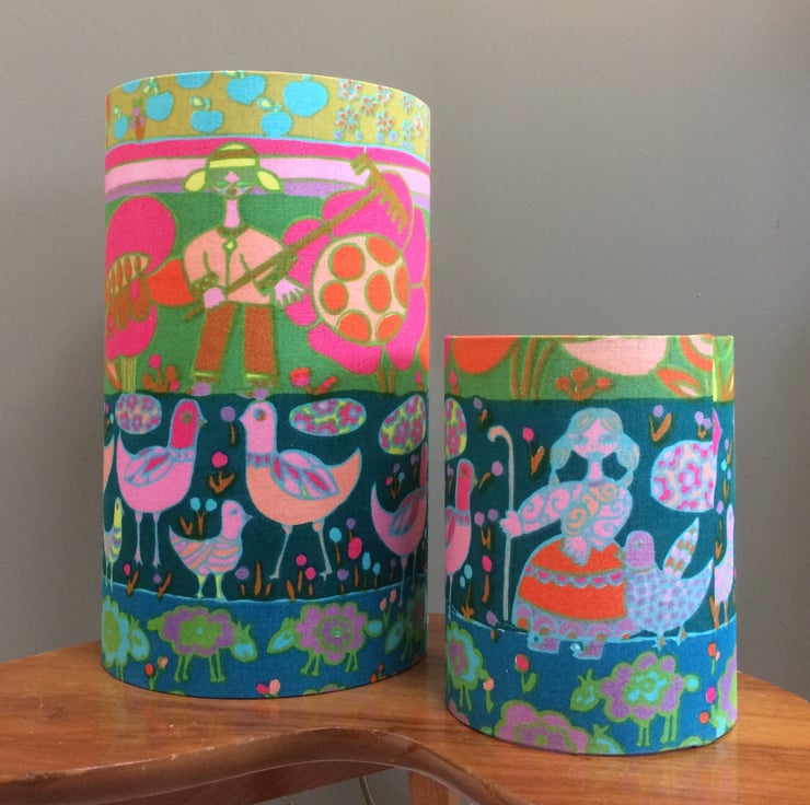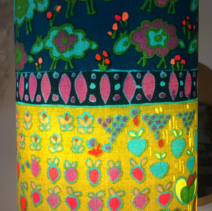 Quirky 70s Blue Pink Yellow BO PEEP Jonelle Vintage Fabric Lampshade option - a fun feature fabric for a lampshade i RARE