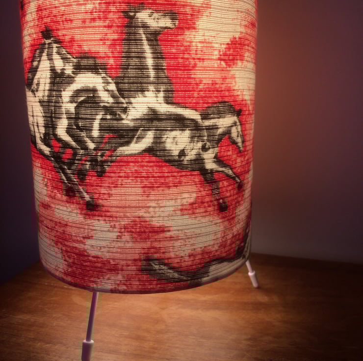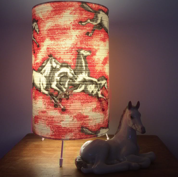 Wild PINK HORSES cute 50s 60s Vintage Fabric Lampshade option - an unusual feature fabric for a lampshade in a modern country or vintage styled home. Great gift for anyone who loves horses.