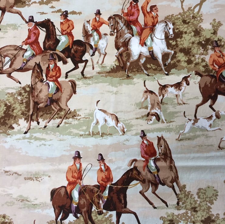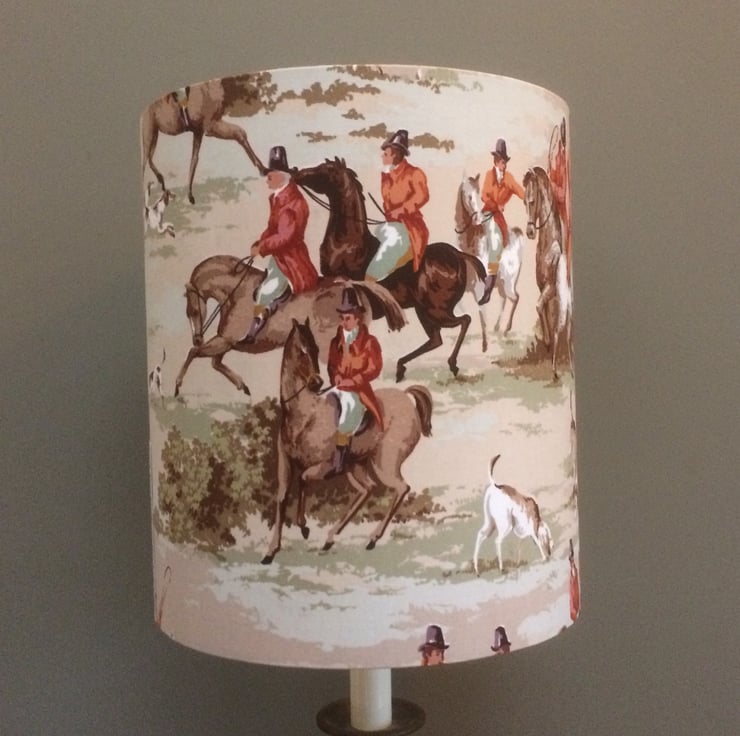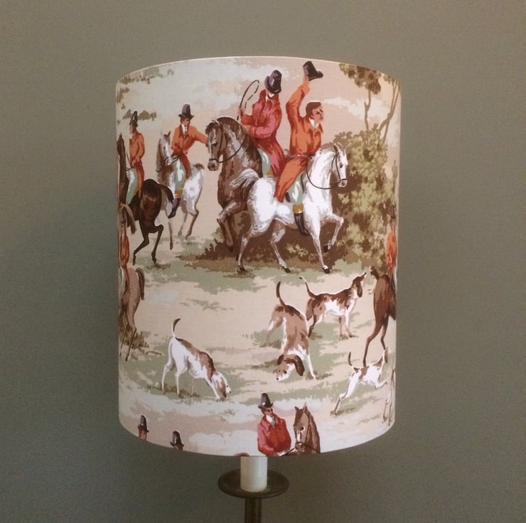 RARE Countryside Horse Hound GONE TO EARTH Vintage Fabric Lampshade option - a classic feature fabric for a lampshade in a modern country or vintage styled home. Very hard to find - the best of it's type early 50s ?
