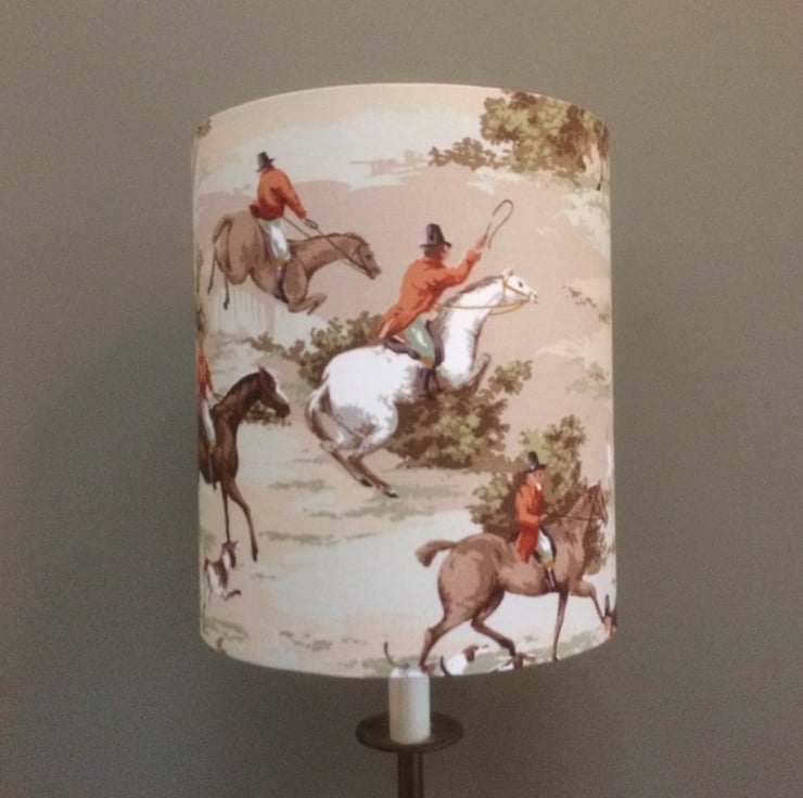 RARE Countryside Horse Hound GONE TO EARTH Vintage Fabric Lampshade option