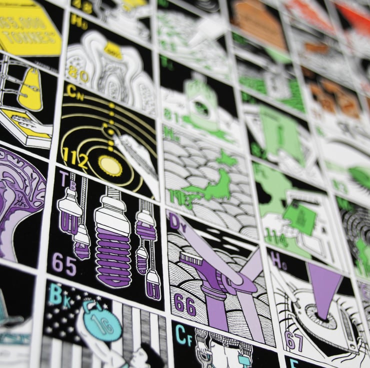 The Illustrated Periodic Table of the Elements - Giclee Prints. 118 hand drawn illustrations of the elements by the artist James Nicholls, presented as a high quality print. An ideal present for a scientist, science teacher, doctor, or anyone with any interest in science and the building blocks of nature.