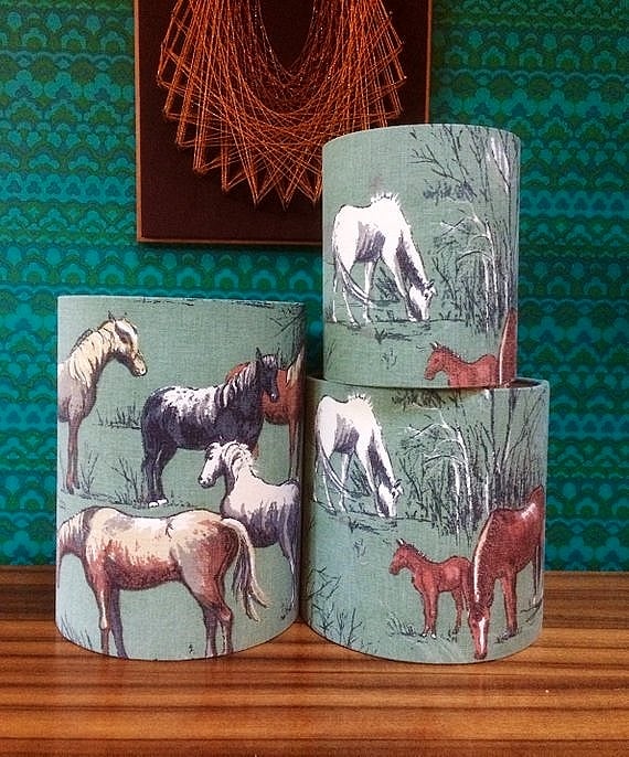 Horse Riding and at the Stables 70s Vintage Fabric Lampshade option - an unusual feature fabric for a lampshade in a modern country or vintage styled home. Great gift for anyone who loves horses and horse riding and something I would have loved as a child!