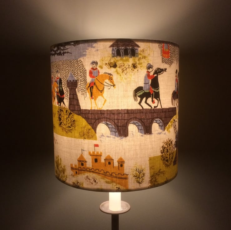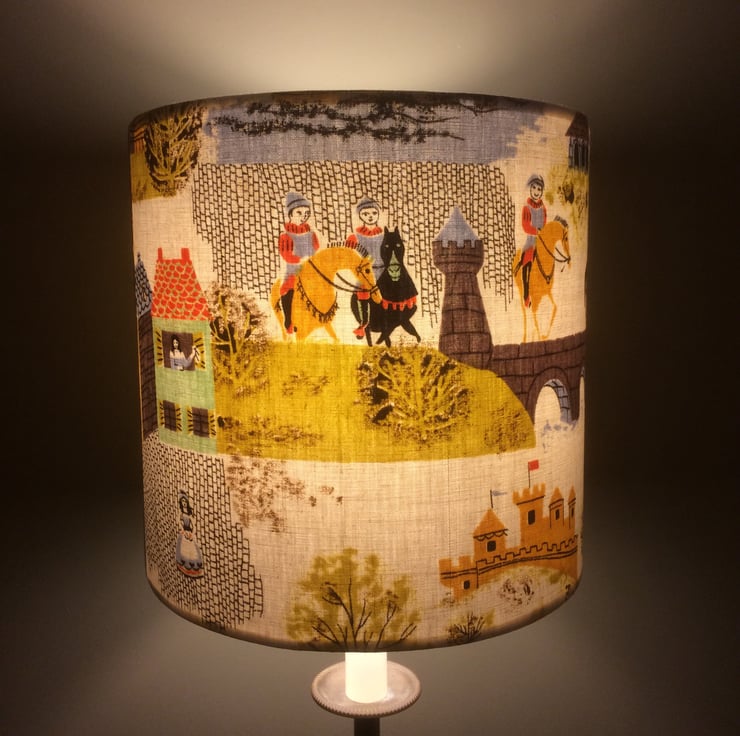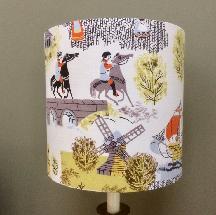 Fun 50s 60s Castle , Ships, Windmill , Horses Vintage Fabric Lampshade option - an unusual feature fabric for a lampshade in a modern country or vintage styled home. Great for a nursery , playroom or childs room in particular .
