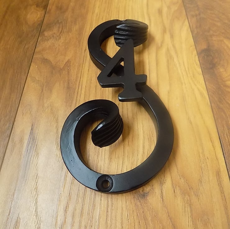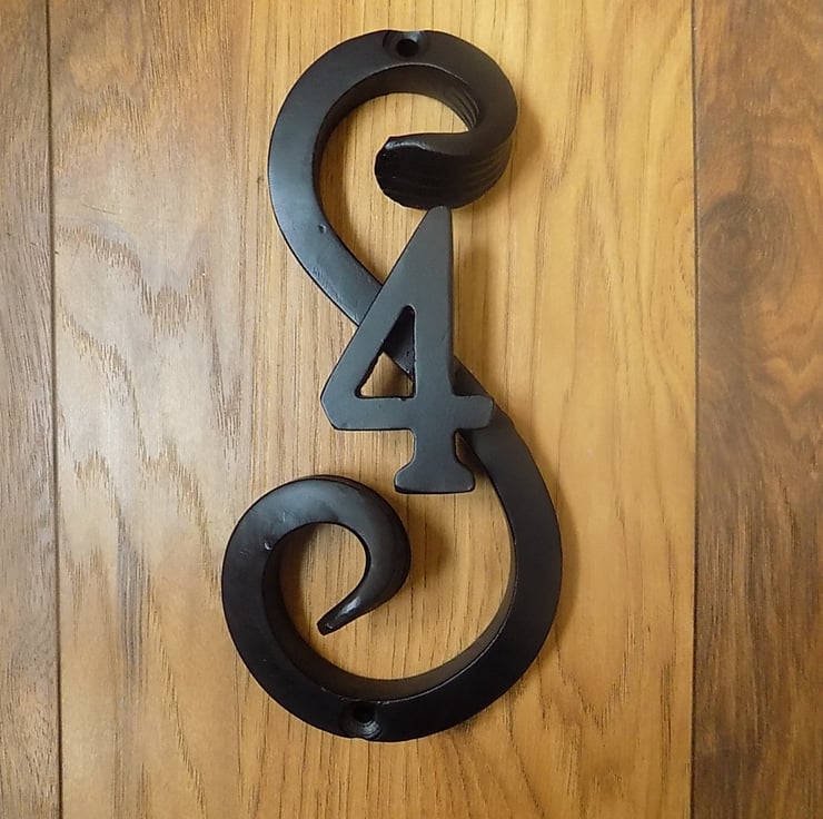 1. Quality Hand Crafted Wrought Iron (Forged Steel) Scrolled House Number Plaque