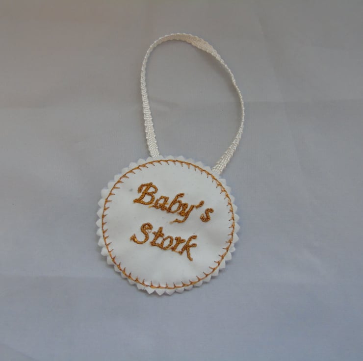 This bird can be personalised with a felt tag. It could be personalised with a baby's name/birthdate to welcome a new arrival or a message of support or congratulations. If you wish to personalise the stork contact us with the details.