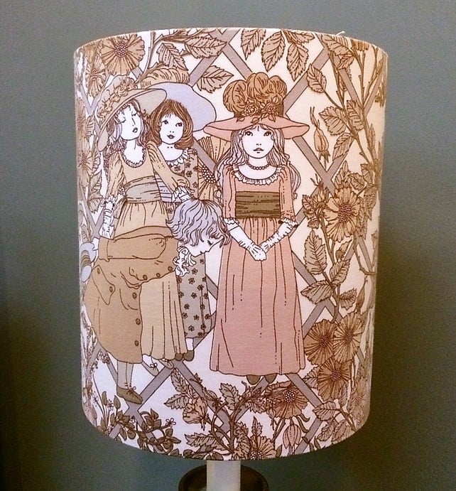 70s Victorian Mothers , Children SUGAR AND SPICE Jonelle Vintage Fabric Lampshade option - a pretty fabric for a lampshade in a Nursery or for a traditional, shabby chic style room .