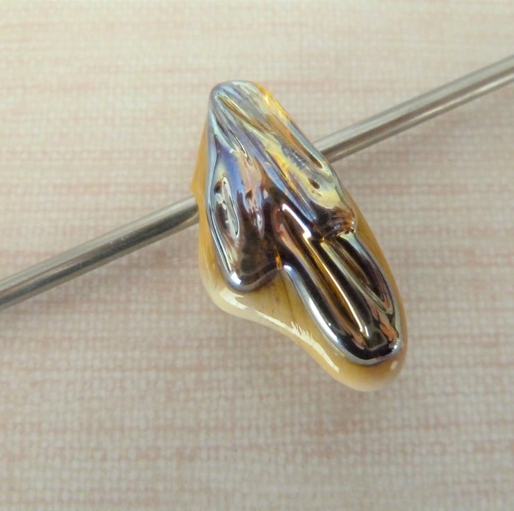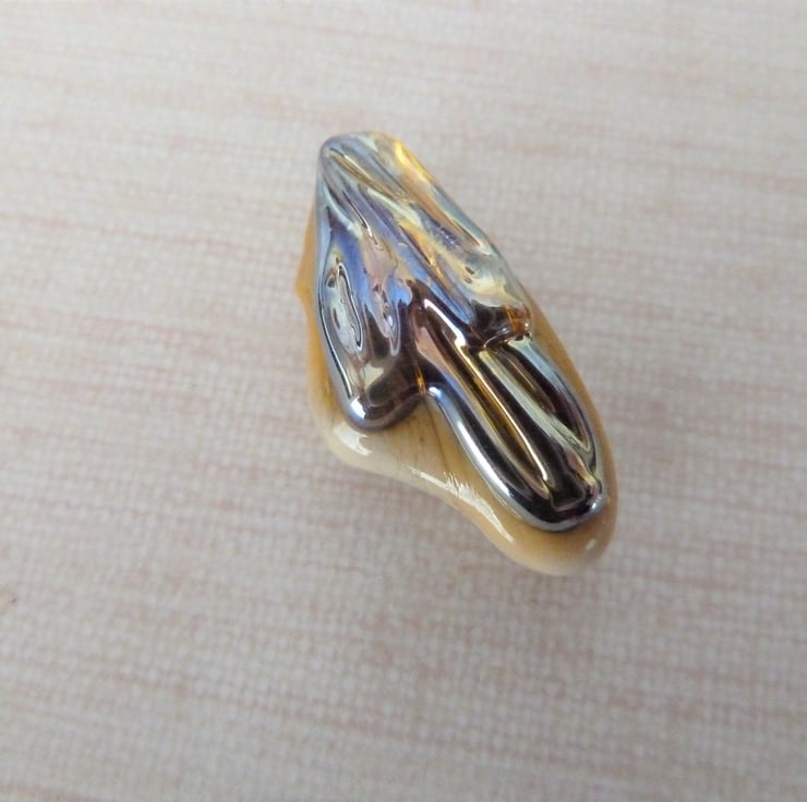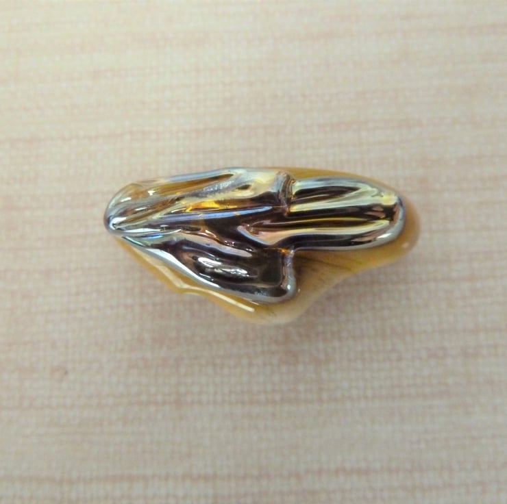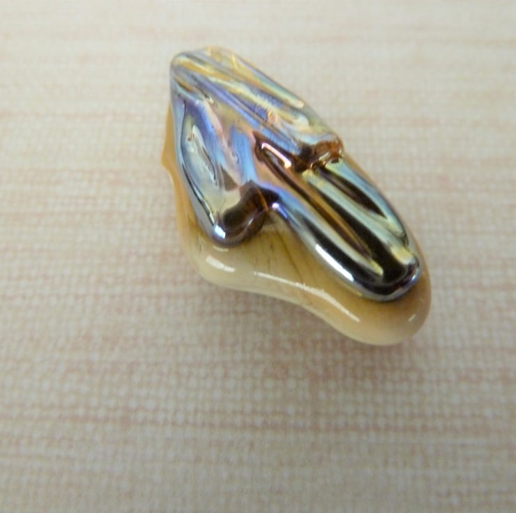 A lampwork glass fairy wing made with ivory and silver glass and shaped using a graphite press.