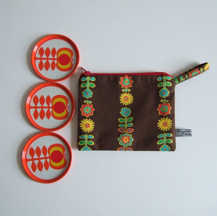 A strong and unusual geometric print, makes this purse or make up bag just a little bit different. This vintage fabric was probably printed in the 1960’s, but it still looks cool today. It would make a great gift for a vintage textile lover, or a fan of Scandi style.