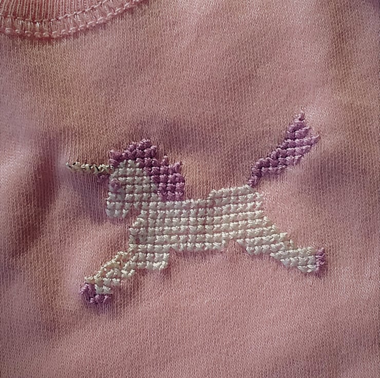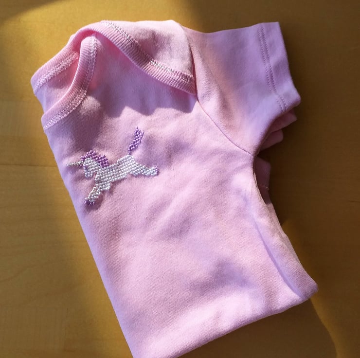 Unicorns have been extremely popular for several years. This delicate pink baby vest suggested the very girlie motif!