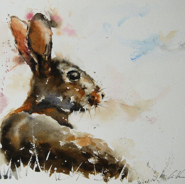 My paintings are inspired by places, memories and nature. This particular painting is of a young Rabbit, enjoying the early morning sun.