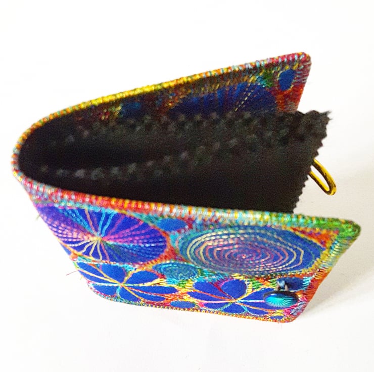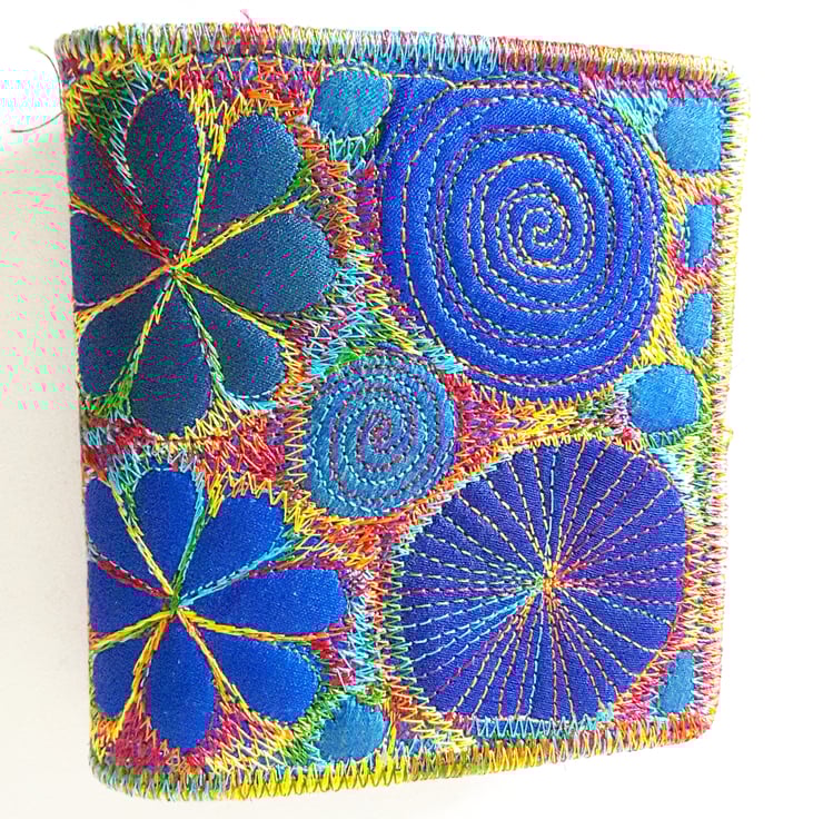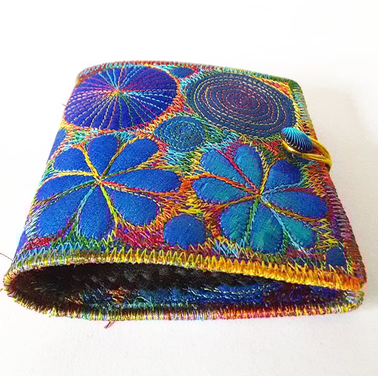Made from layers of fabric including hand dyed Egyptian cotton and silk fabrics using the free machine embroidery style of sewing