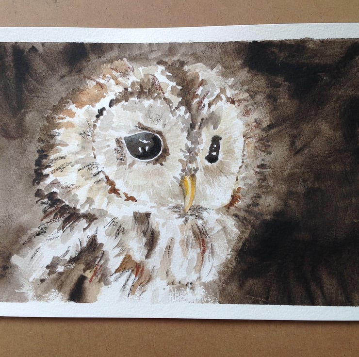 An original painting, NOT a print. I have used paint and water soluble wax crayons to create this cute owl. It would make a lovely gift for anyone keen on wildlife, birdwatching or ornithology.