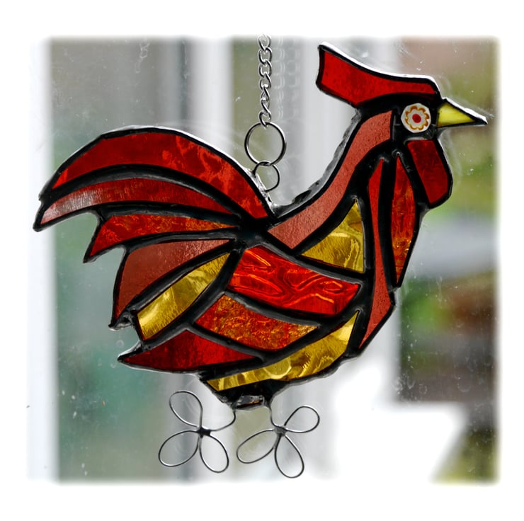 This is a stained glass suncatcher made using the Tiffany copper foil technique.