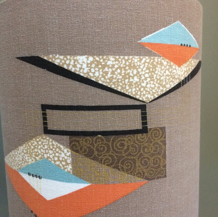 50s Beige ATOMIC Geometric Abstract Barkcloth Vintage Fabric Lampshade option - dramatic vintage fabric for a great feature in a modern or retro home.