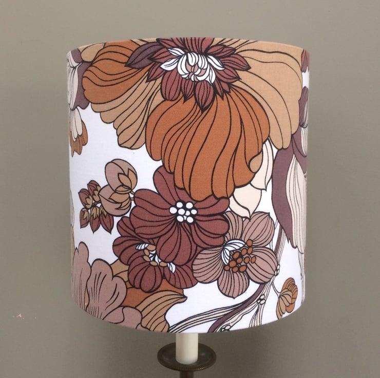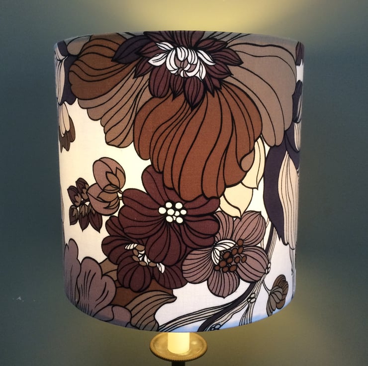 Funky 70s Blue or Brown BIG BOLD Floral ( Tropica by STORY ) Vintage Fabric Lampshade - great in either a modern or traditional home.
