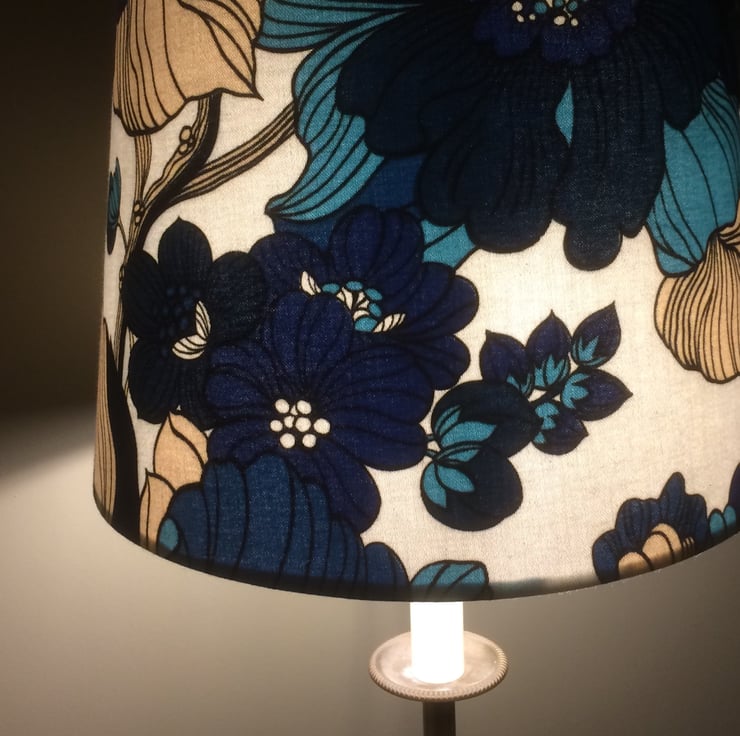 Funky 70s Blue or Brown BIG BOLD Floral ( Tropica by STORY ) Vintage Fabric Lampshade - great in either a modern or traditional home.