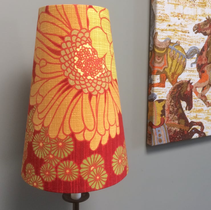 70s Orange Floral LARGO ( by Sidlaw Textiles , UK , 1975) VIntage Fabric Lampshade option - a vibrant fabric for a great feature in a modern or retro home.
