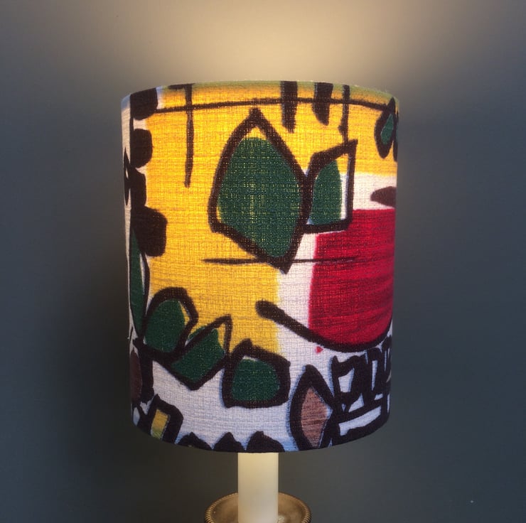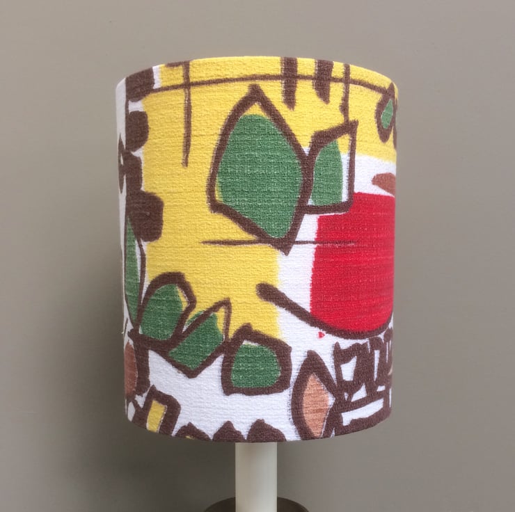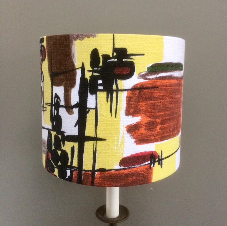 50s Yellow Atomic Abstract Barkcloth Vintage Fabric Lampshade option - striking fabric for a lampshade in a modern, vintage or retro home.