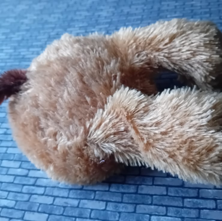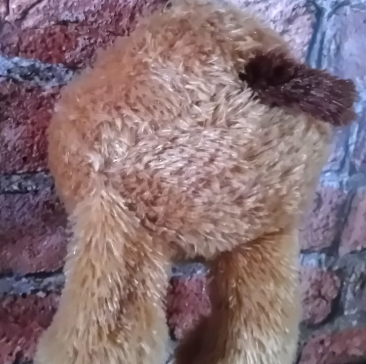 Upcycled soft toy repurposed into a wall hanging. This cheeky wall hanging is of the butt of a dog and would make a very unusual wall hanging in a child's bedroom or on any wall