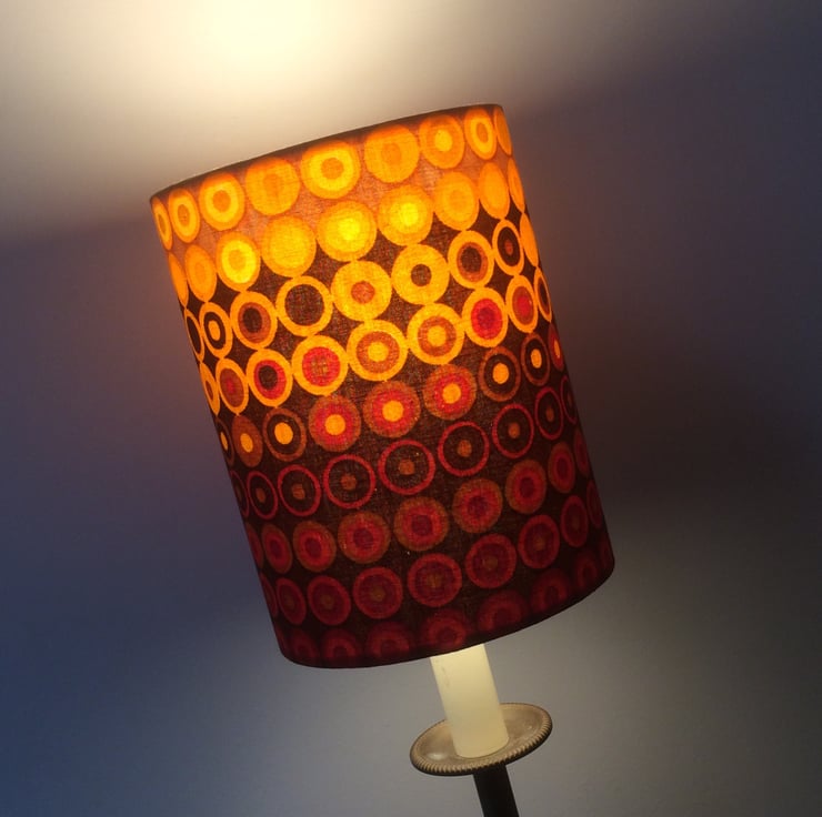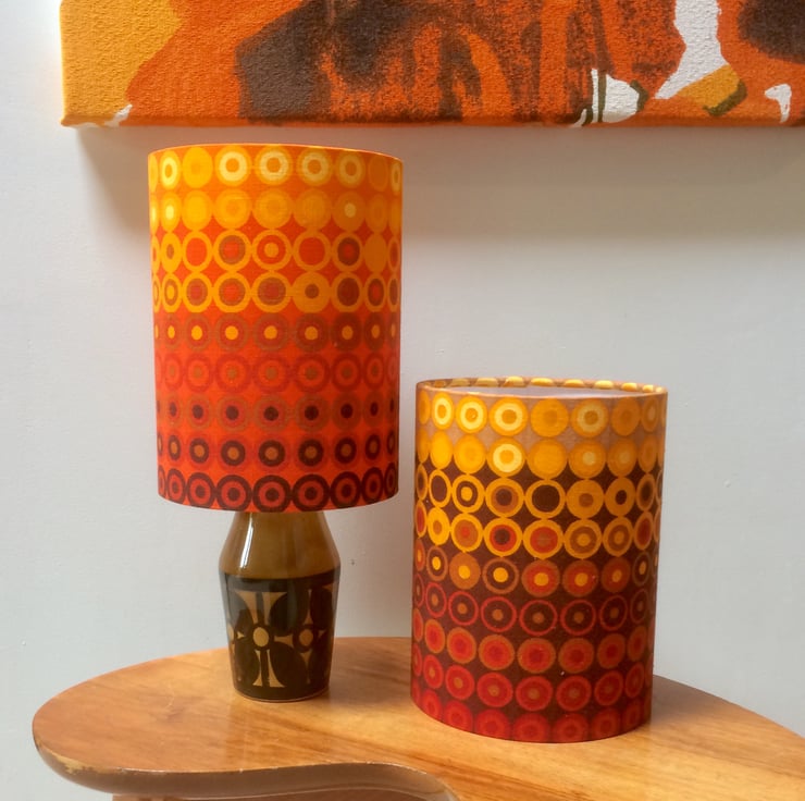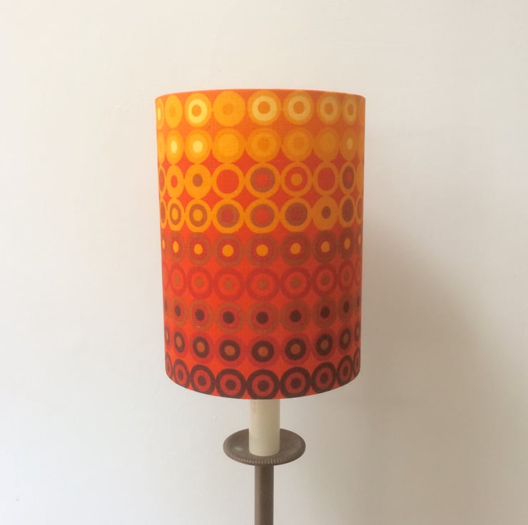 Yellow and Orange DECOPLUS Dots Circles MOD Vintage Fabric Lampshade - for a lampshade in a modern, vintage or retro home. Available in two slightly different variations A and B - see Pic