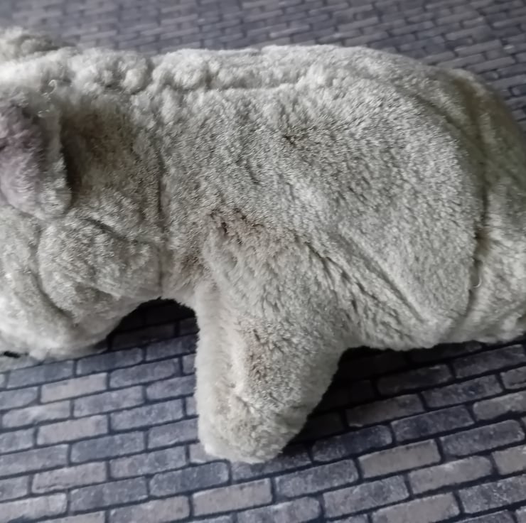 Upcycled soft toy repurposed into a wall hanging. This rhino may be small but it is perfectly formed and you don't need to go big game hunting to nab it! This would make a lovely decoration in a nursery or child's bedroom or even a fun addition to a home office.