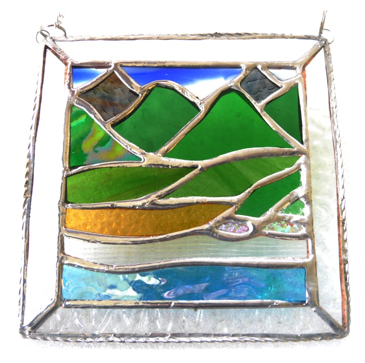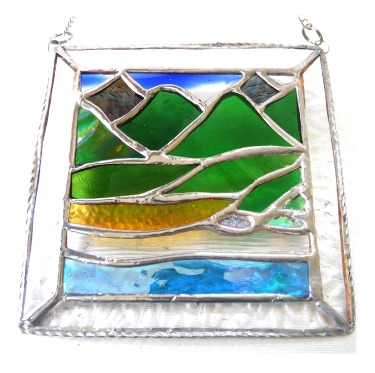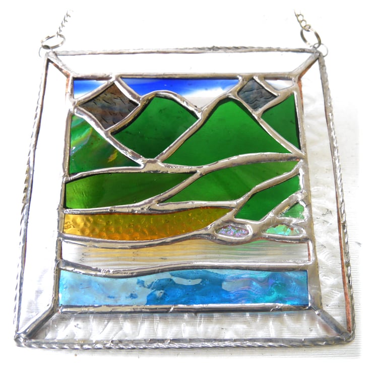 This is a stained glass suncatcher made using the Tiffany copper foil technique. One of my very own designs and I think it is quite stunning and very special.