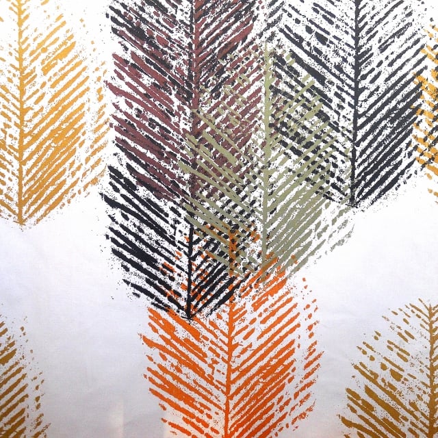 BIG ABSTRACT LEAF DESIGN Black Orange Green Vintage Fabric Lampshade option - BOLD feature fabric for a lampshade in a modern, traditional or retro home. HEALS Fabric “Fall” by Cliff Holden .