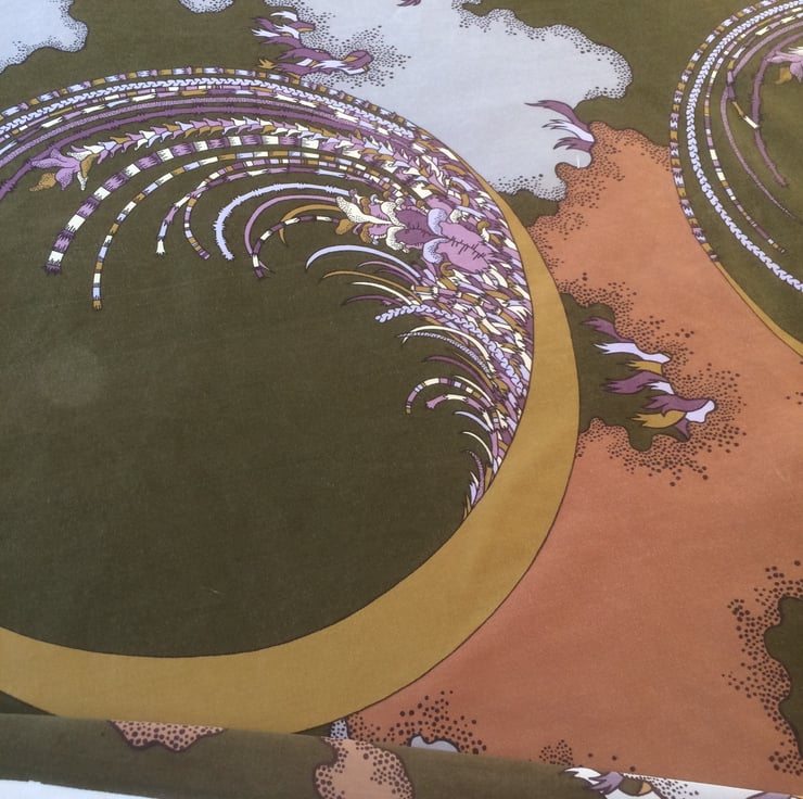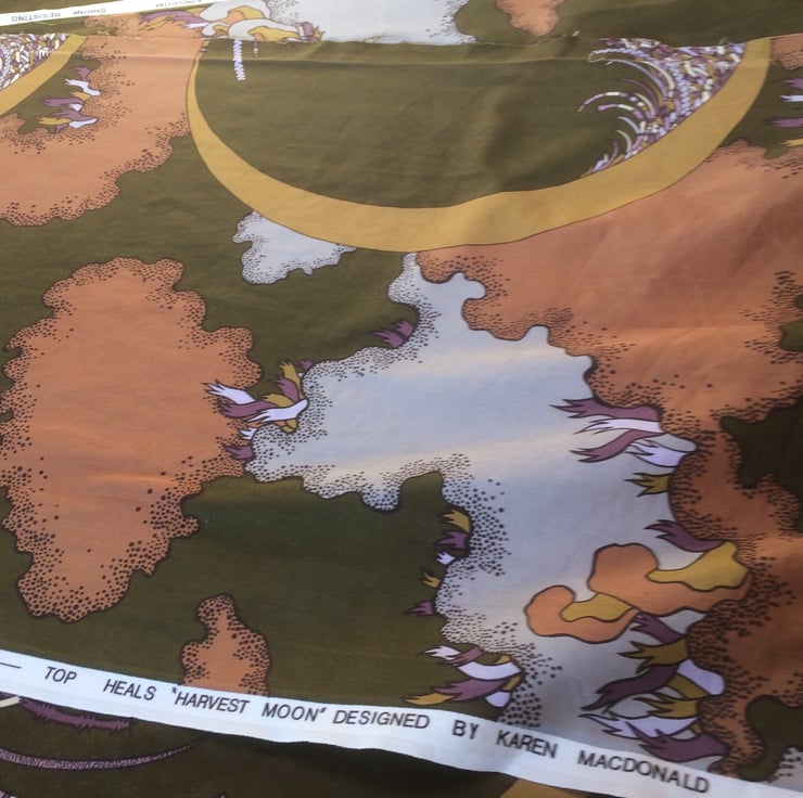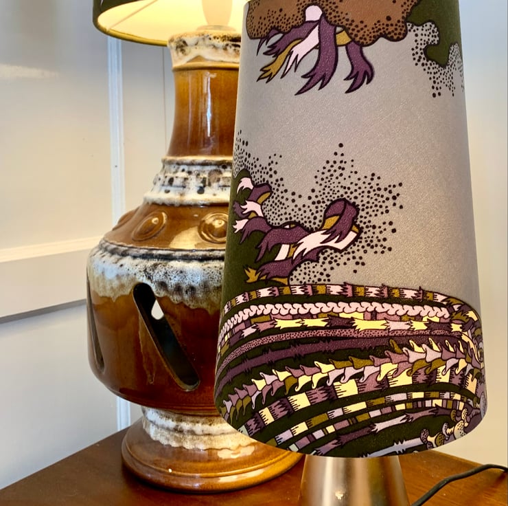 Groovy HARVEST MOON designed by Karen Macdonald for Heals Vintage Fabric Lampshade option - beautiful feature fabric for a lampshade in a modern or retro home. Particularly good if you have a 70s theme to your home and looks great with light shining through/