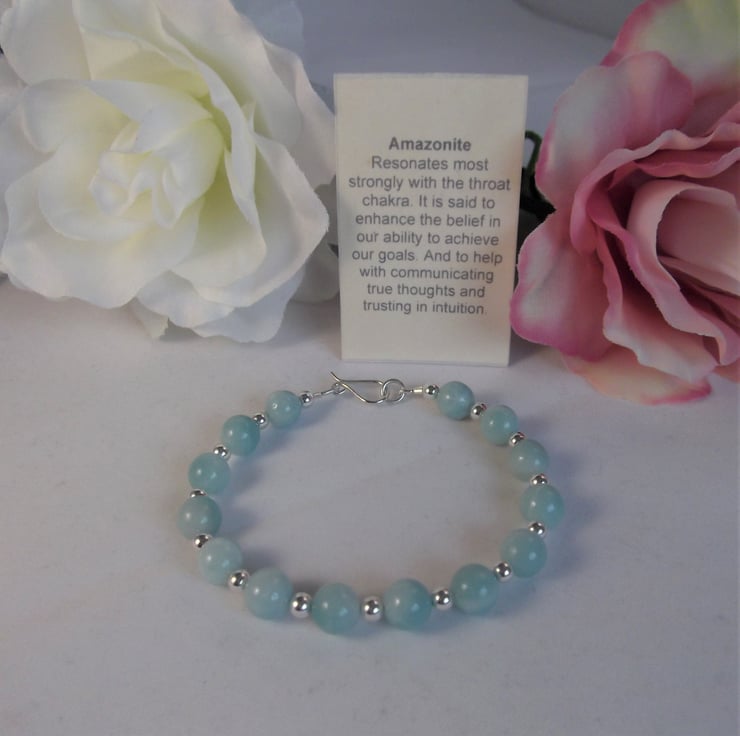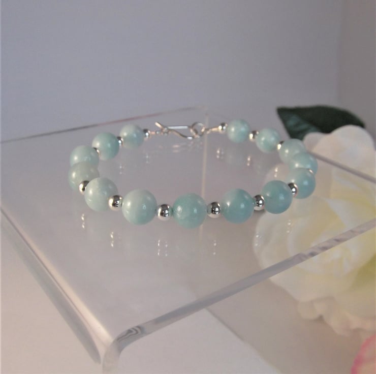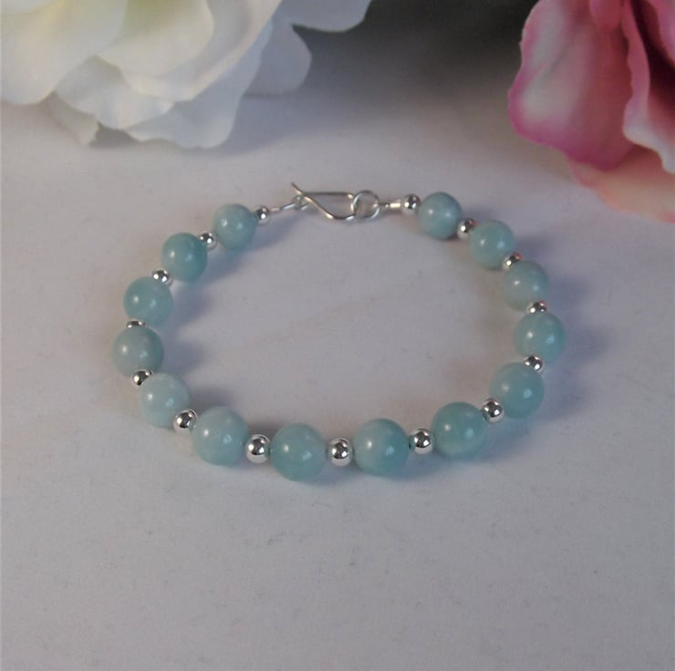 Amazonite & sterling silver bead bracelet recycled silver clasp