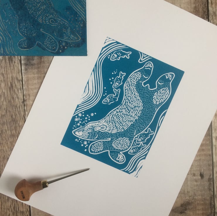 I love bears, do you? I've had this image in my head for a while now, so I'm very glad he's finally appeared. This is an original Lino print pressed on a beautiful Columbian Press at Hot Bed Press Studios in Salford, Greater Manchester. I'm experimenting with different blues so the current prints are made with a rather fetching hand-mixed turquoise water based ink on Snowdon 300gsm stock. The printed area measures approximately 14.5cm x 20cm on A3. He will be posted to you within 5 days carefully wrapped up for the journey in tissue and rolled in a cardboard tube. No bears have been harmed in the making of this print, indeed I shall be donating £5 from the sale of each print to Polar Bears International. So feel extra good about buying from me!