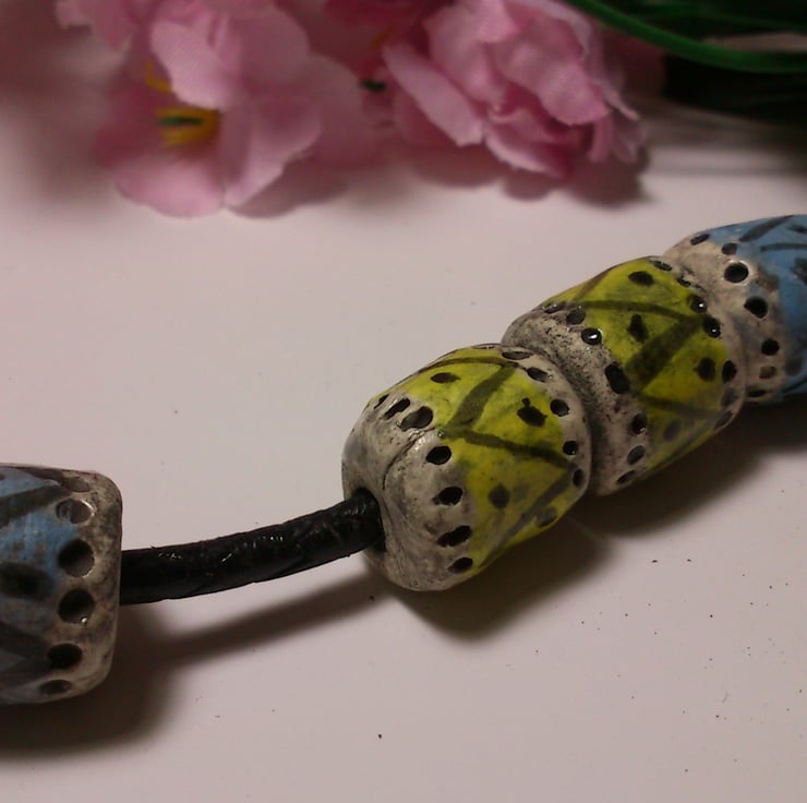 Yellow and blue textured beads with cheerful summer colours of blue and yellow.