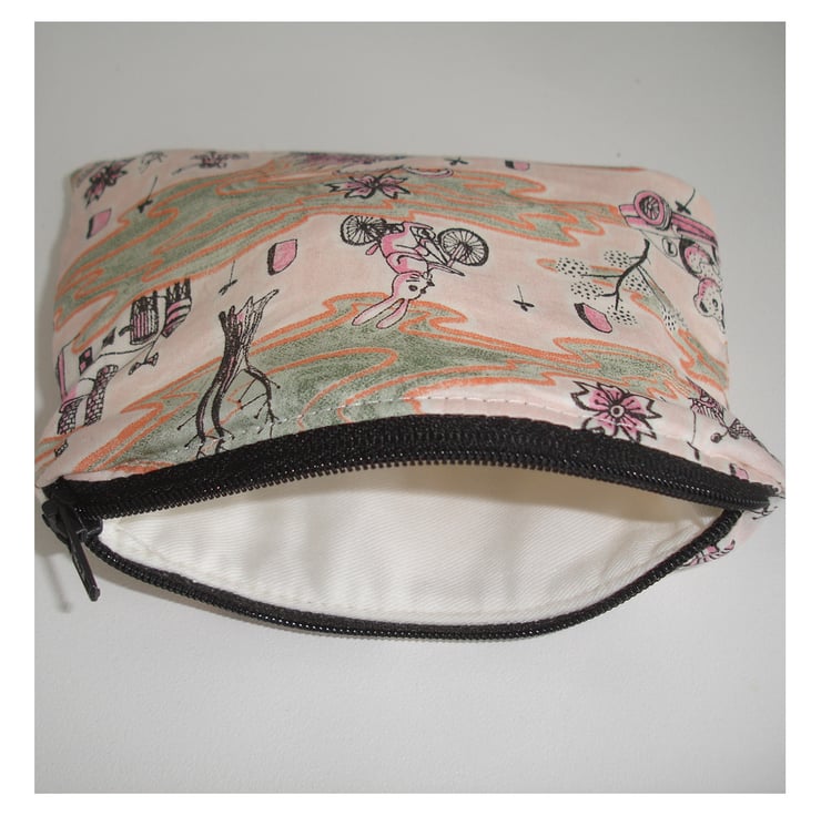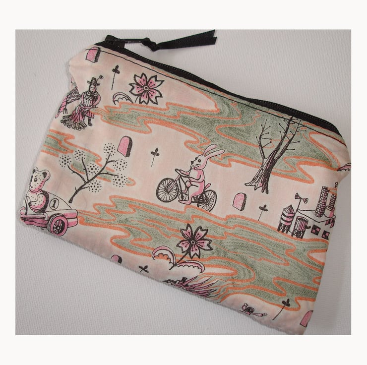 Zipped Coin / Credit Card Purse in Liberty Tana Lawn Cotton Fabric - Grayson Perry's Flo design depicting Polution in Toyland!