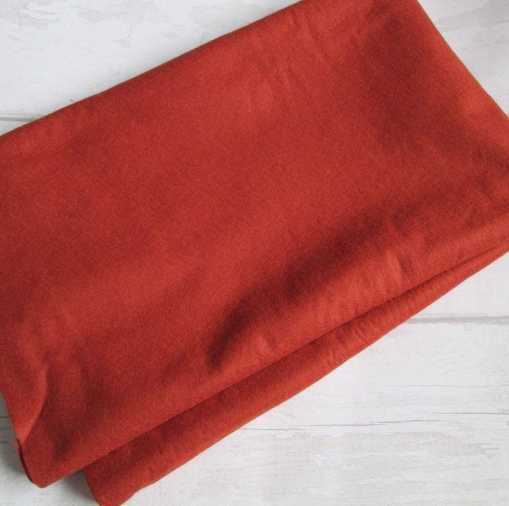 One metre of 180 cm wide terracotta / gingerbread coloured felt. Not sure of the composition, but probably acrylic. Approximately 1 mm thick and very close, smooth texture - not a fluffy felt.