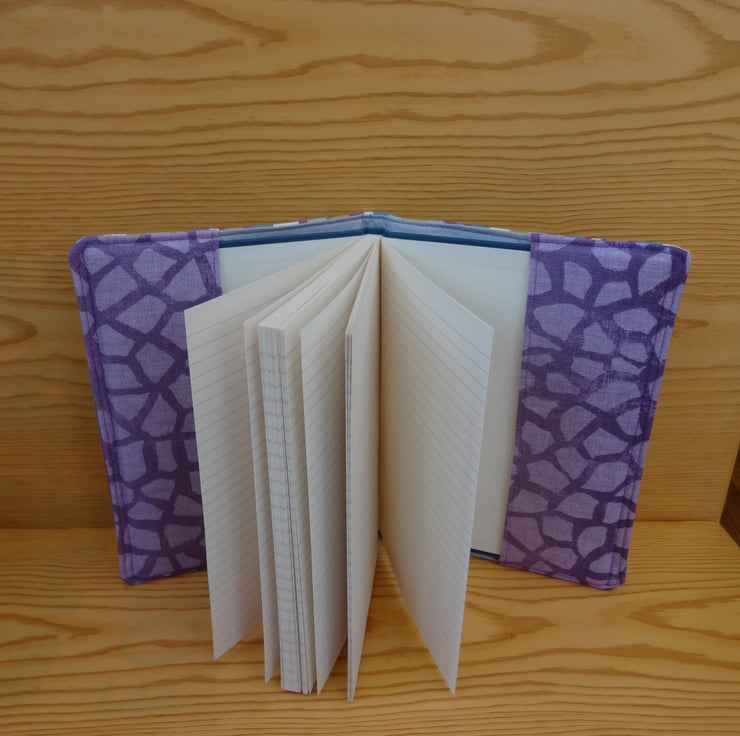 A5 hardbacked notebook which has a handcrafted fabric sleeve cover.