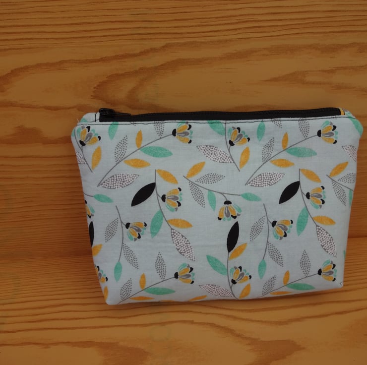 The bag has a black zipper running along the top and has a bright pink wipeable lining.