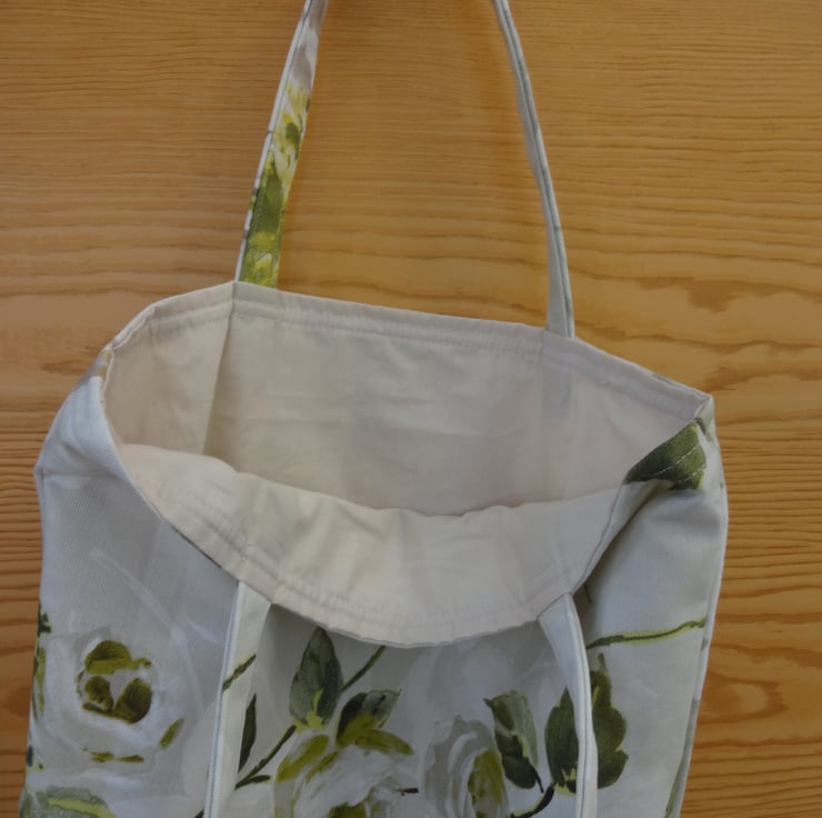 Handcrafted tote bag which has been fully lined with a cream coloured lining.