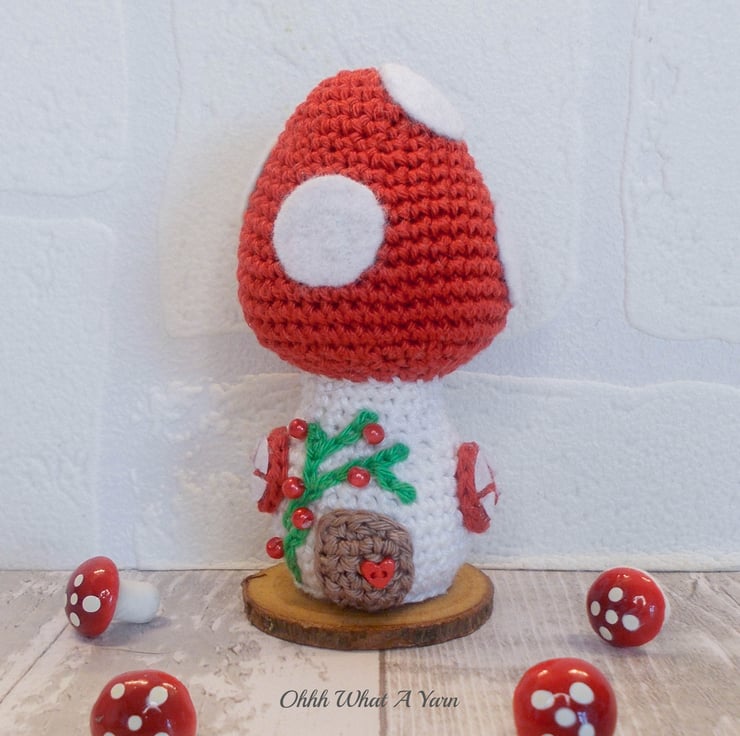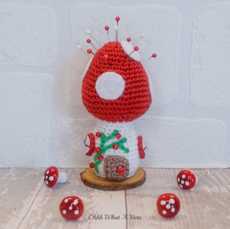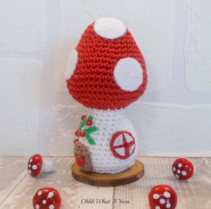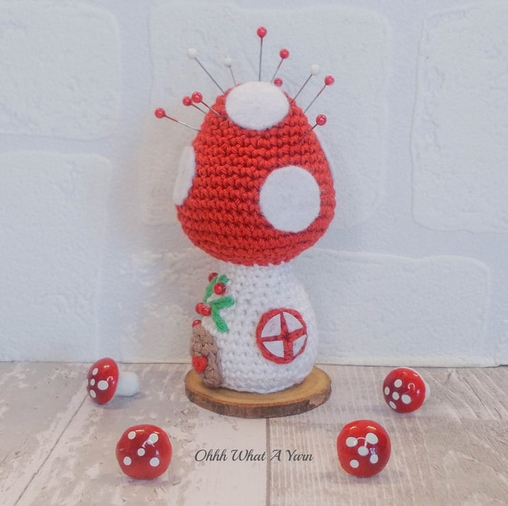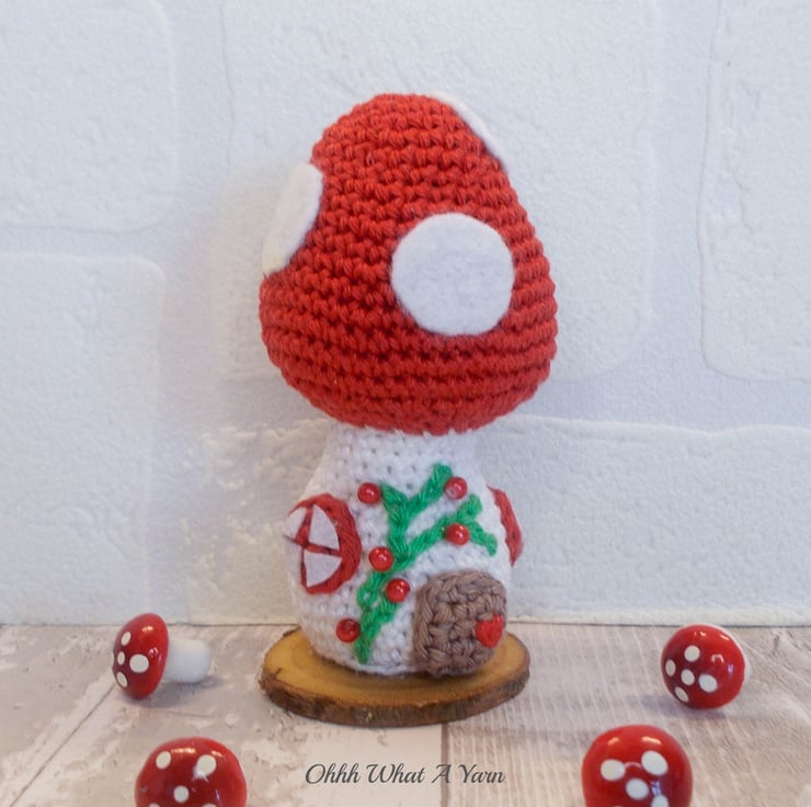 This cute red and white toadstool decoration is crocheted using gorgeous mercerised cotton yarns giving it a lovey sheen and stitch definition and it is stuffed using EN71 safe premium grade polyester toy stuffing. It can also double up as a gorgeous pin cushion.