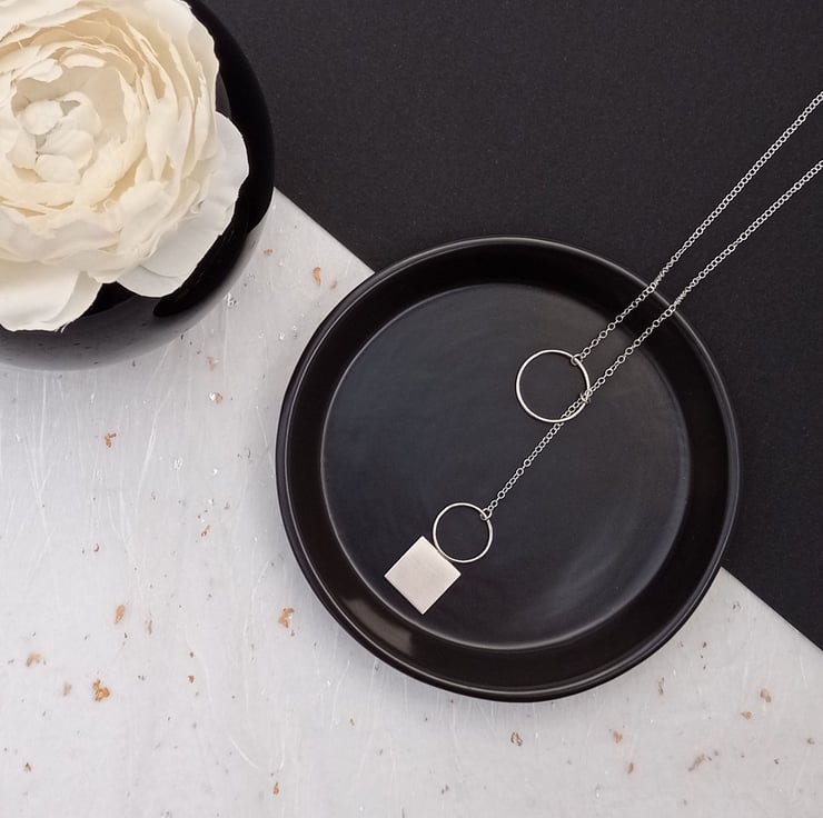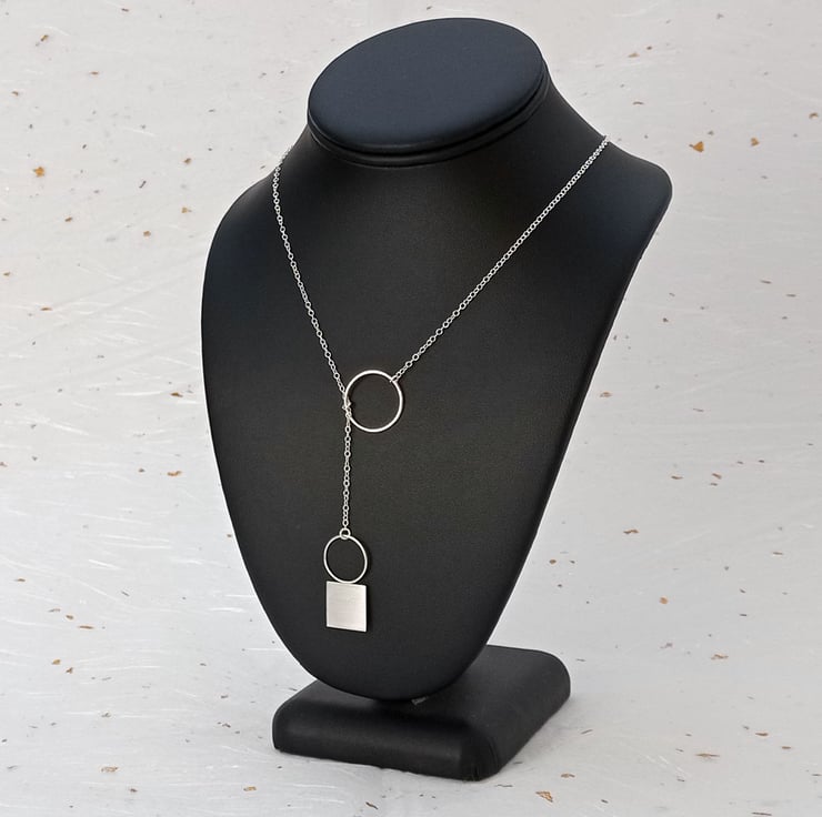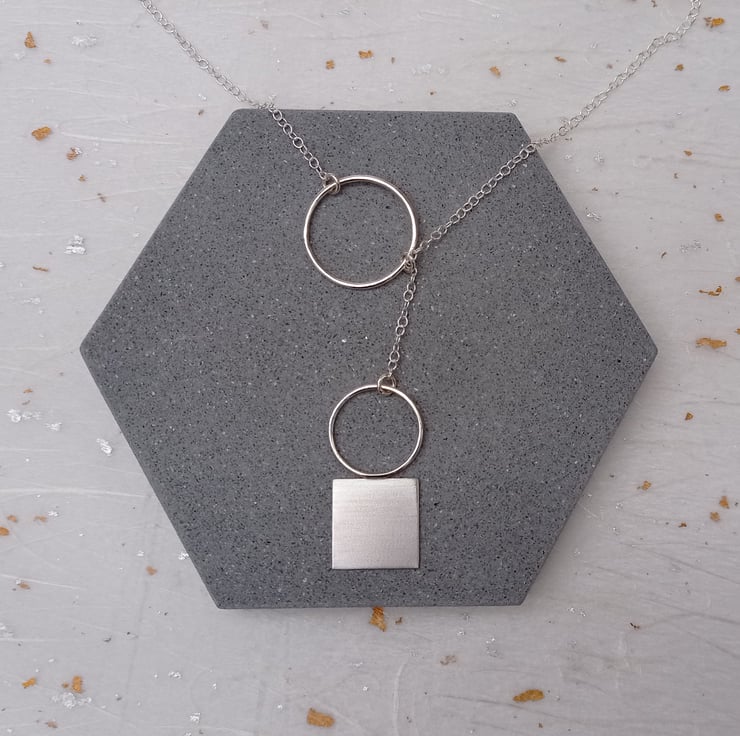Do you love geometric shapes? This circle and square wire lariat style necklace would suit someone who loves contemporary jewellery.